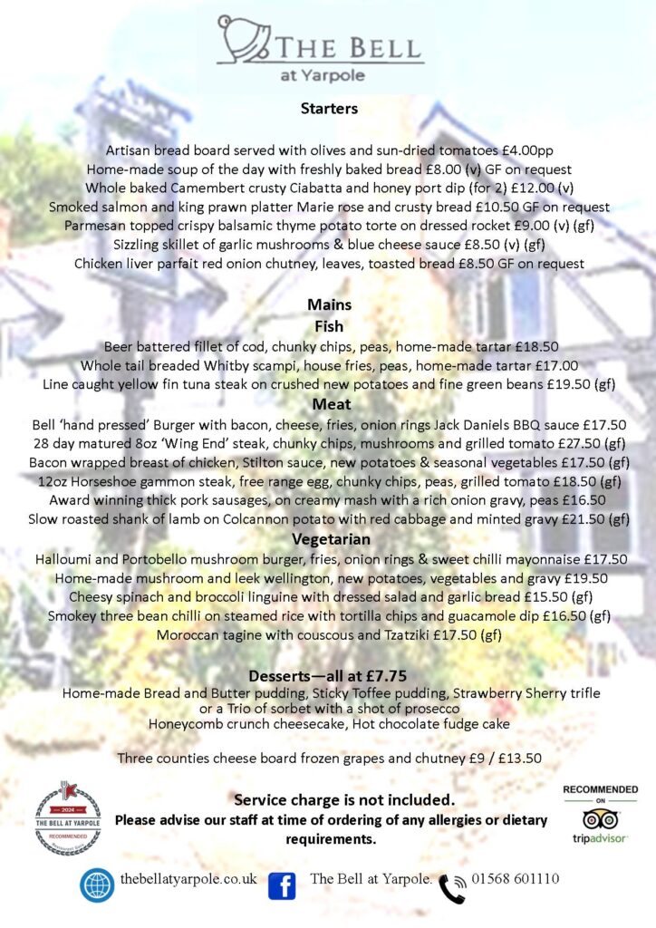 Takeaways can be booked for collection from the pub. If you have mobility issues we will be happy to deliver locally. Telephone us on 01568 601110.